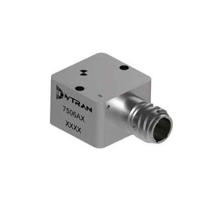 The Dytran series 7506A is a high precision single axis variable capacitance (VC) accelerometer available with measurement ranges of 400g and 50g. This high precision accelerometer combines an integrated VC accelerometer chip with high drive, low impedance buffer for low level acceleration measurements.