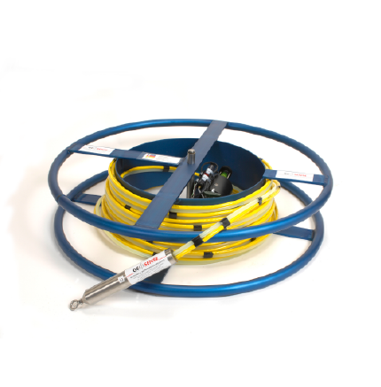 Working principle: A vibrating wire sensor is located within a probe that can be pulled through a buried pipe or borehole. The sensor is connected via a liquid-filled tube mounted on a reel which is mounted horizontally at the reservoir location on stable ground. The reel is free to turn as the probe is pulled through the pipe or borehole.