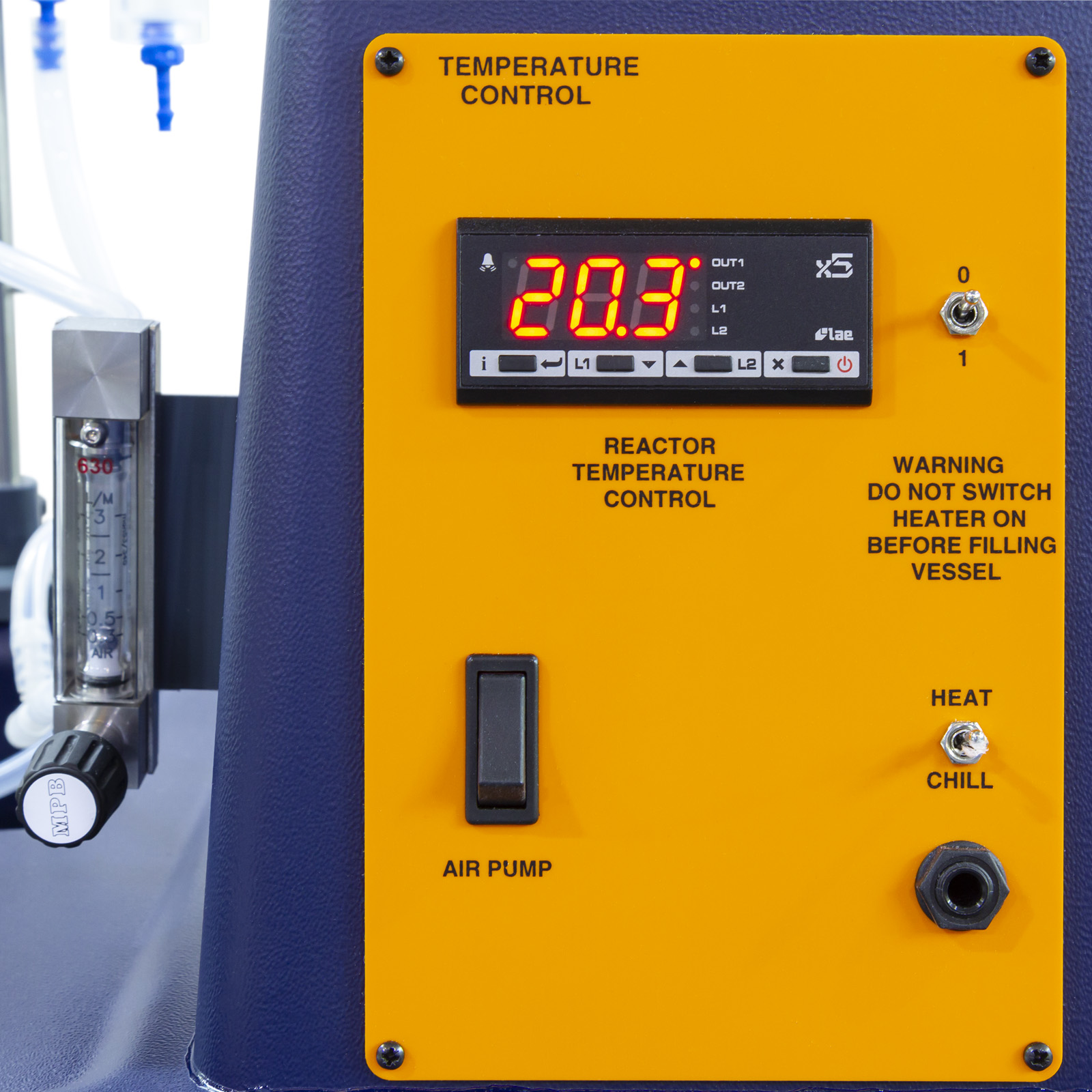 The reactor temperature is maintained by a three-term controller, which varies power to an immersion heater within the vessel. Any temperature between ambient and +35°C may be selected, the best conditions being a few degrees above the diurnal maximum in the user’s laboratory.