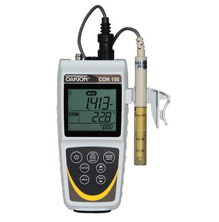 The CON 150 meter offers a rugged, waterproof housing with built-in stand at an economical price. The large, three-line LCD lets you view the conductivity or TDS measurement simultaneously with temperature.
