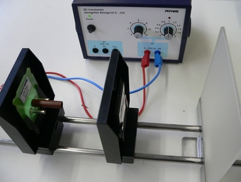 Because stray light barely affects this measurement, the clasroom only needs to be slightly darkened in order to make the interferences on the screen visible. The distances must be measured very precisely because even a small imprecision will lead to large deviations in the result.