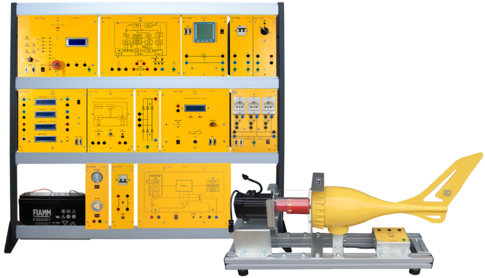 Modular trainer for the theoretical and practical study of the electric energy generation from a micro-grid wind turbine.